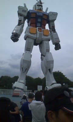 ■で、ガンダム見て来たんだけど、ちょうどガンダムの下にたどり着いたところで携帯の電池が切れるという奇跡。仕方なくツレの携帯借りてパシャパシャと撮影したった