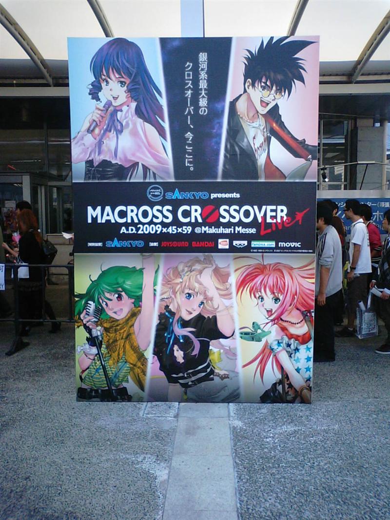 ヤスイの席が、ステージの前から5列目という素晴らしい場所だったので、May'nちゃんの膝頭のシワまでくっきり見えちゃうよぉ、マメグの腋の下くんかくんかしたいおとか、そんなこと言ってる場合じゃねえ! マクロスFのライブは過去3度行ったけど、今回はクロスオーバーライブということで、初代マクロスから飯島真理、マクロス7からファイアーボンバーの福山芳樹とチエ・カジウラ、それと事前に告知されてなかったマクロスプラスから新居昭乃、そしてマクロスFからMay'nとマメグ、スペシャルゲストにシェリル役の遠藤綾と、バサラ役の神奈延年にミレーヌ役の櫻井智…というラインナップ。ついでに、エキセドル参謀のMCで始まり、味方殺しのカムジンのMCで締める…というのがファンのツボを突いてるのかどうなのか微妙なトコもツボでした。そら少年もぐったりするよ!